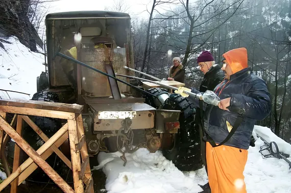 Miehet kantoivat kaksia sylinteriä suojaisan kiven taakse – rautalangalla, koska ne olivat polttavan kuumia – ja tekivät siihen leirinsä. He söivät eväitä ja naukkailivat vähän vodkaa.